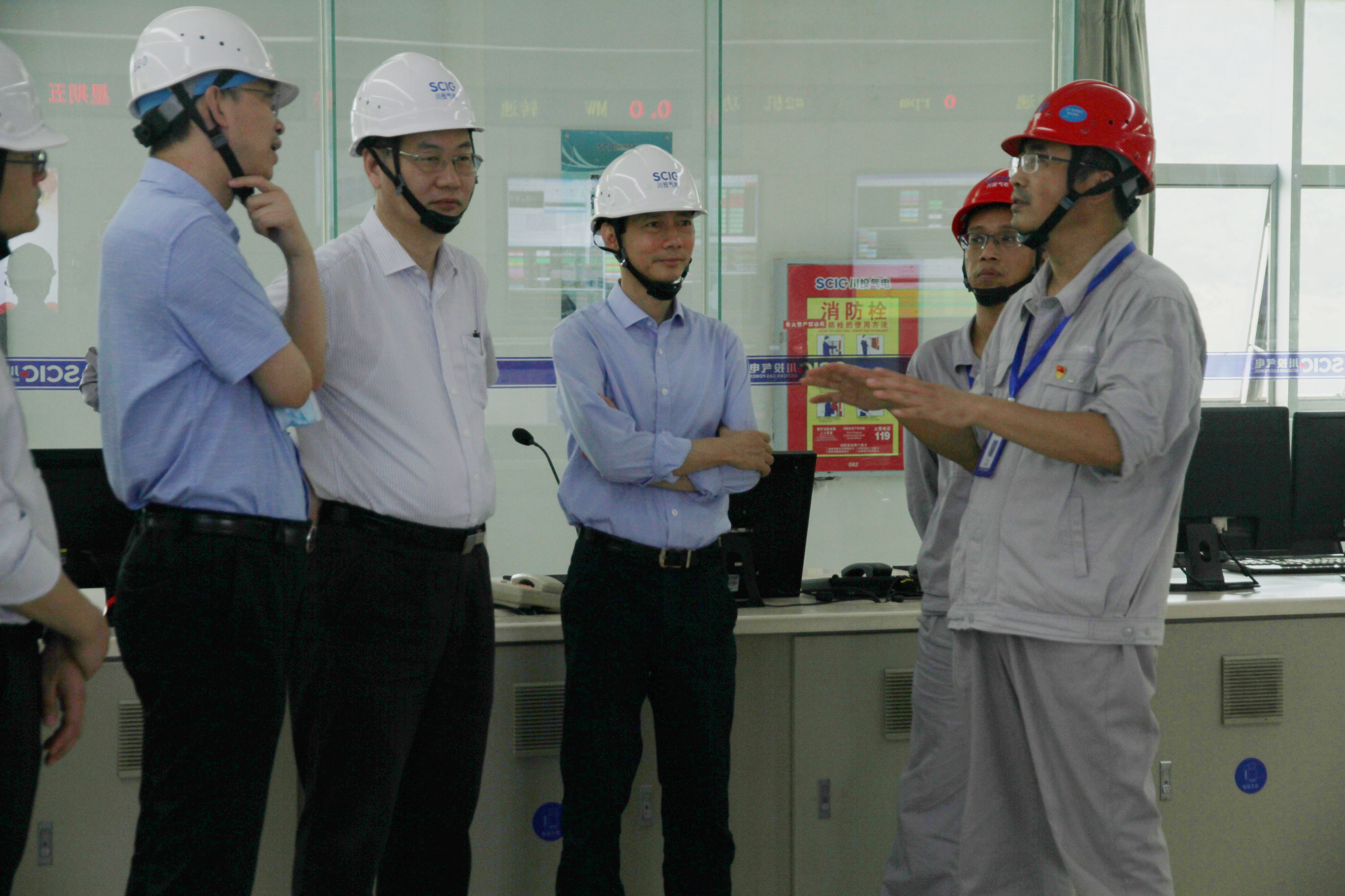 张昊一行先后来到天然气调压站、二期扩建场地、集控室等处实地了解并听取了川投气电安全生产经营工作情况汇报,对川投气电自投产以来在安全生产、燃机技术管理、高效运营等方面取得的业绩给予充分肯定。