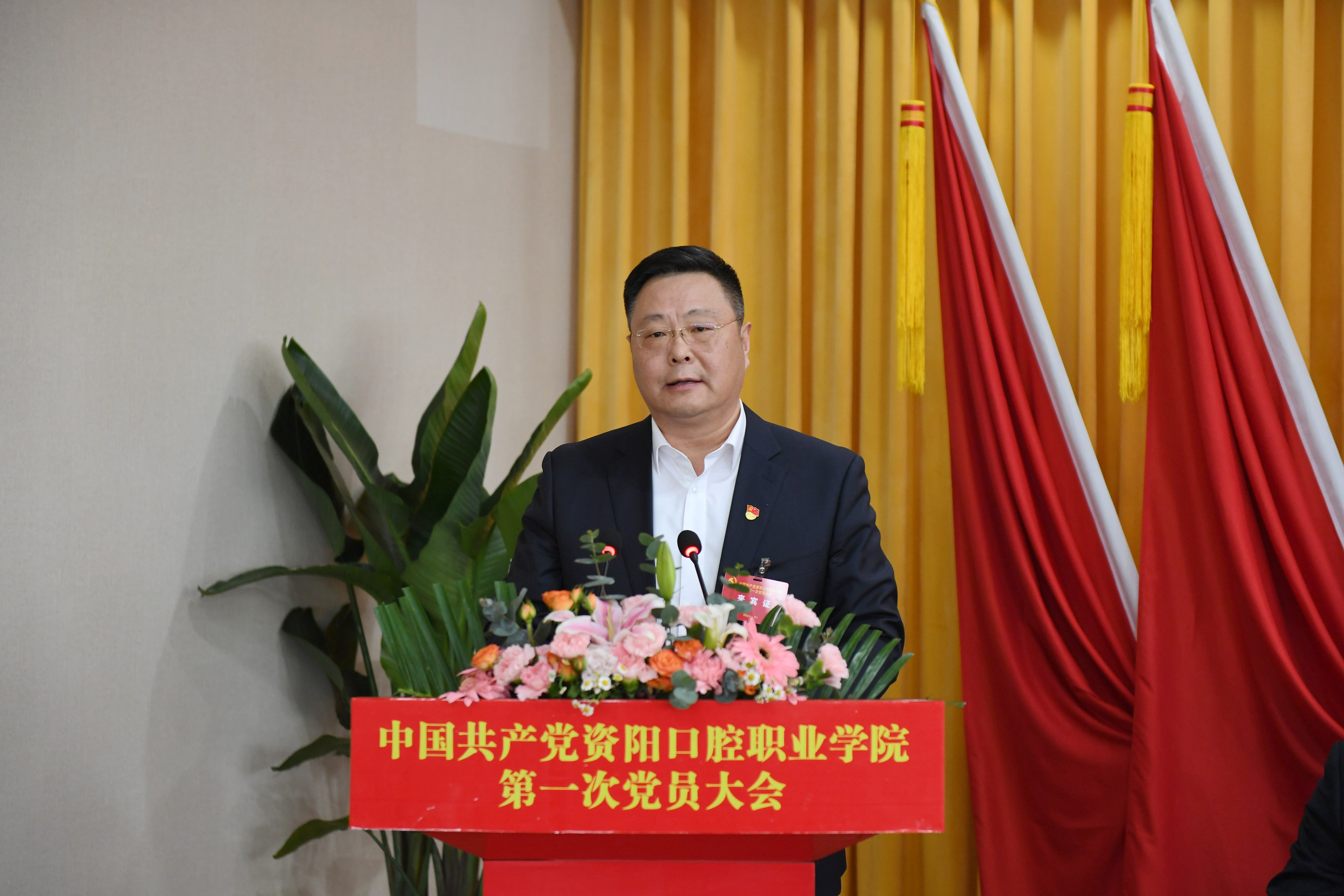 李文志代表集团公司党委对大会的召开表示祝贺并发表重要讲话。他指出,资阳口腔职业学院三年来的发展历程,实现了党的建设全面加强、办学特色全面彰显、招生人数全面突破、教学培训全面提升。这样的成绩来之不易,得益于省委、省政府的正确决策和省委教育工委的精心指导,川投集团党委践行“国企办学”的使命担当和口腔学院全体教职员工艰苦创业、迎难而上,共同推动了资阳口腔职业学院实现高质量发展。