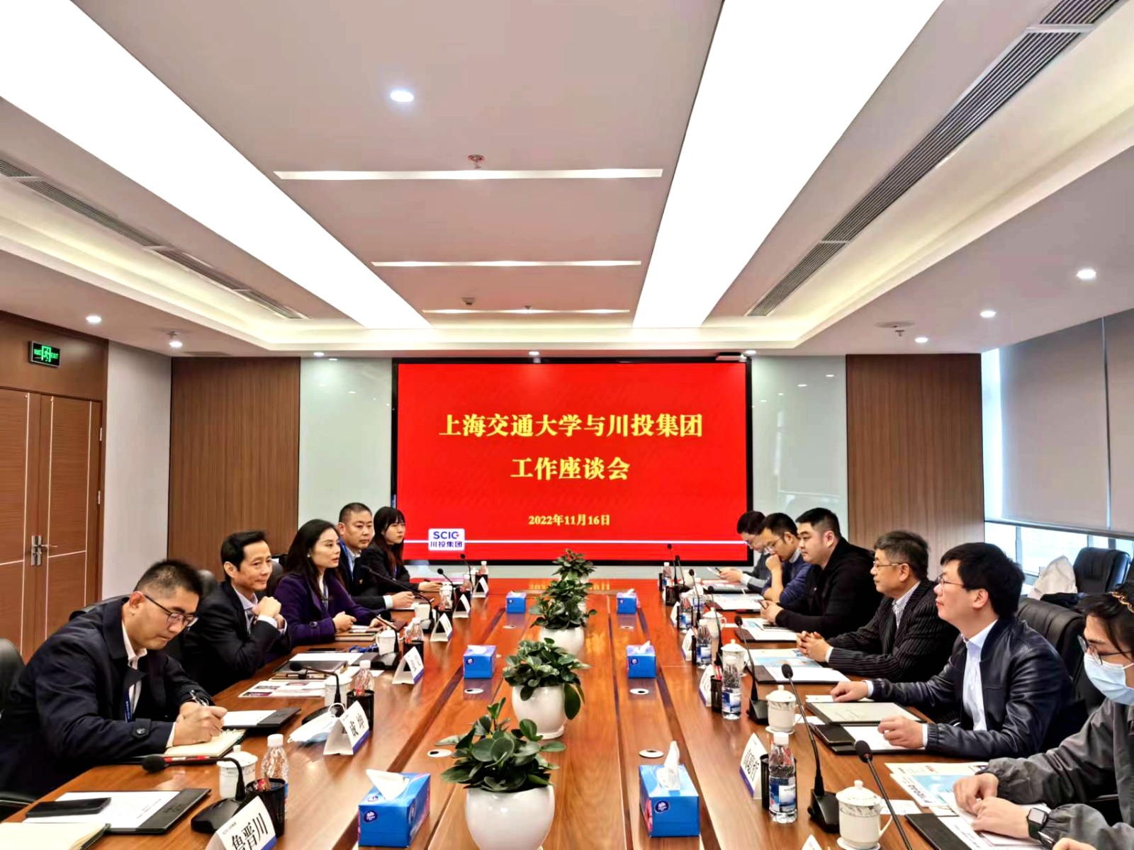 1116日,上海交通大学四川研究院战略咨询委员会主任李成刚,上海交通大学电子信息与电气工程学院党委副书记、副教授博士生导师黄文焘一行到访川投集团开展工作座谈。集团公司副总经理张昊出席会议集团机关党委书记、党委组织部部长朱莉主持会议。