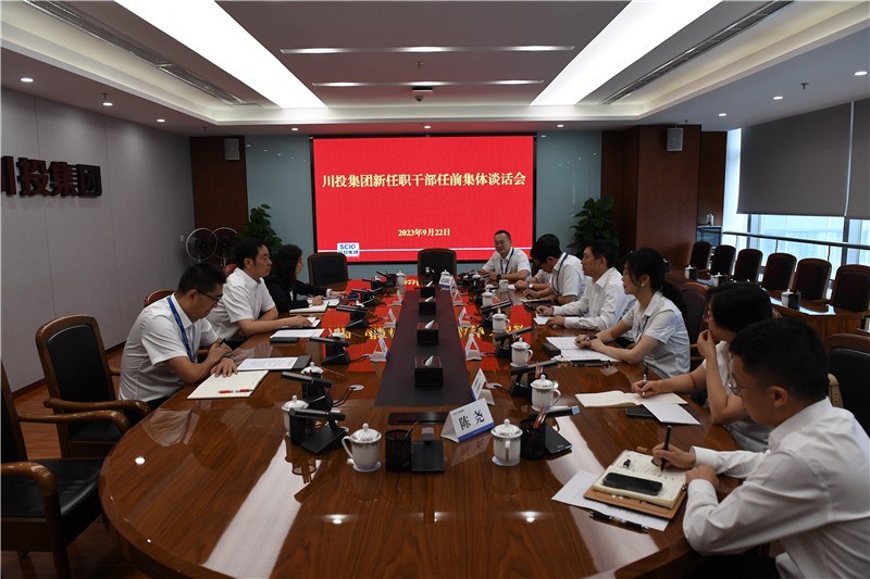 2023年9月22日上午,川投集团组织召开新任职干部任前集体谈话会。集团公司党委副书记、董事邓凯出席会议并讲话,党委组织部部长朱莉主持会议。