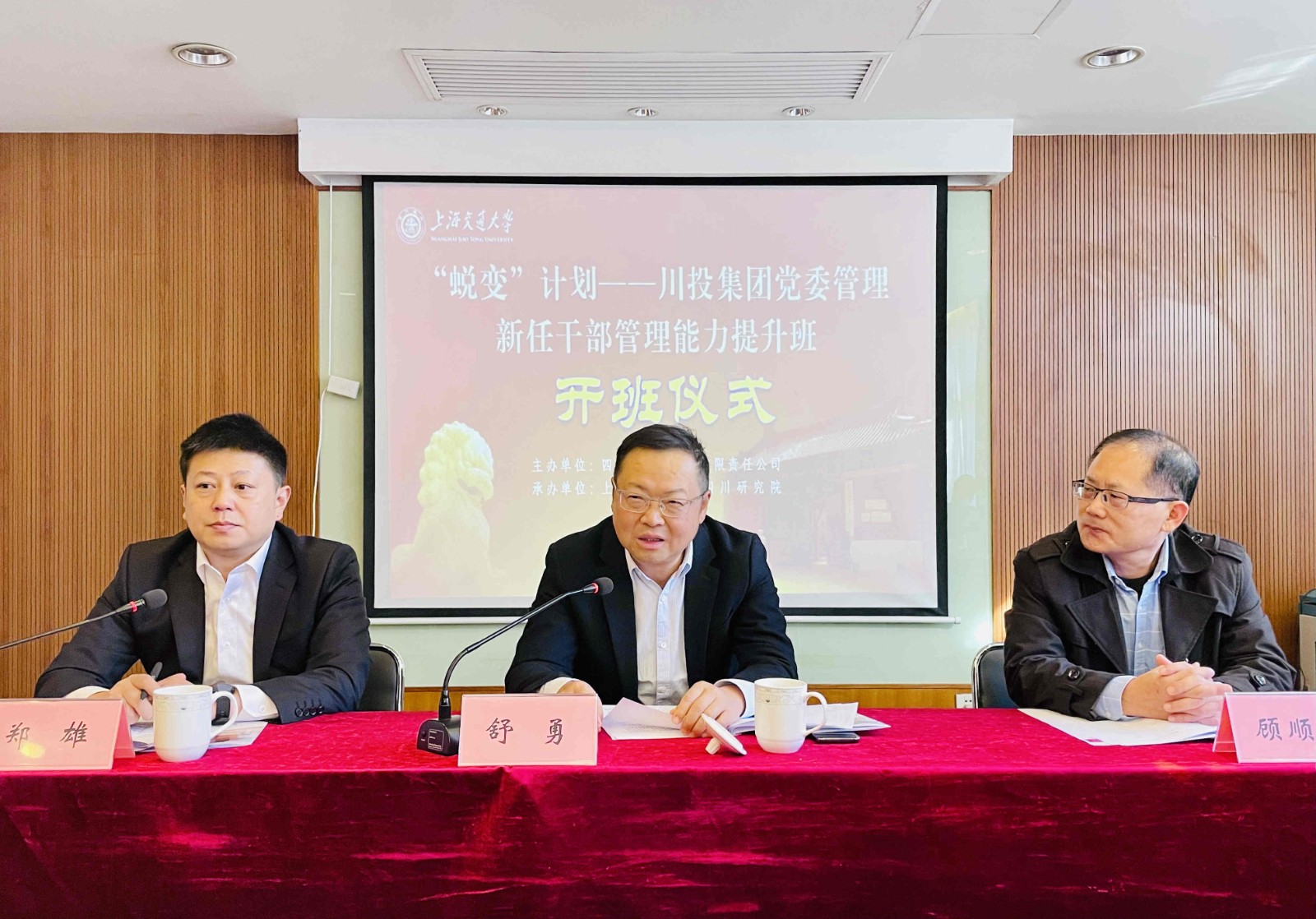 11月13日,“蜕变计划”——川投集团党委管理新任干部管理能力提升班在上海交通大学正式开班。集团公司党委委员、副总经理舒勇出席开班式并作动员讲话,上海交通大学四川研究院副院长顾顺超出席开班式并致欢迎辞。