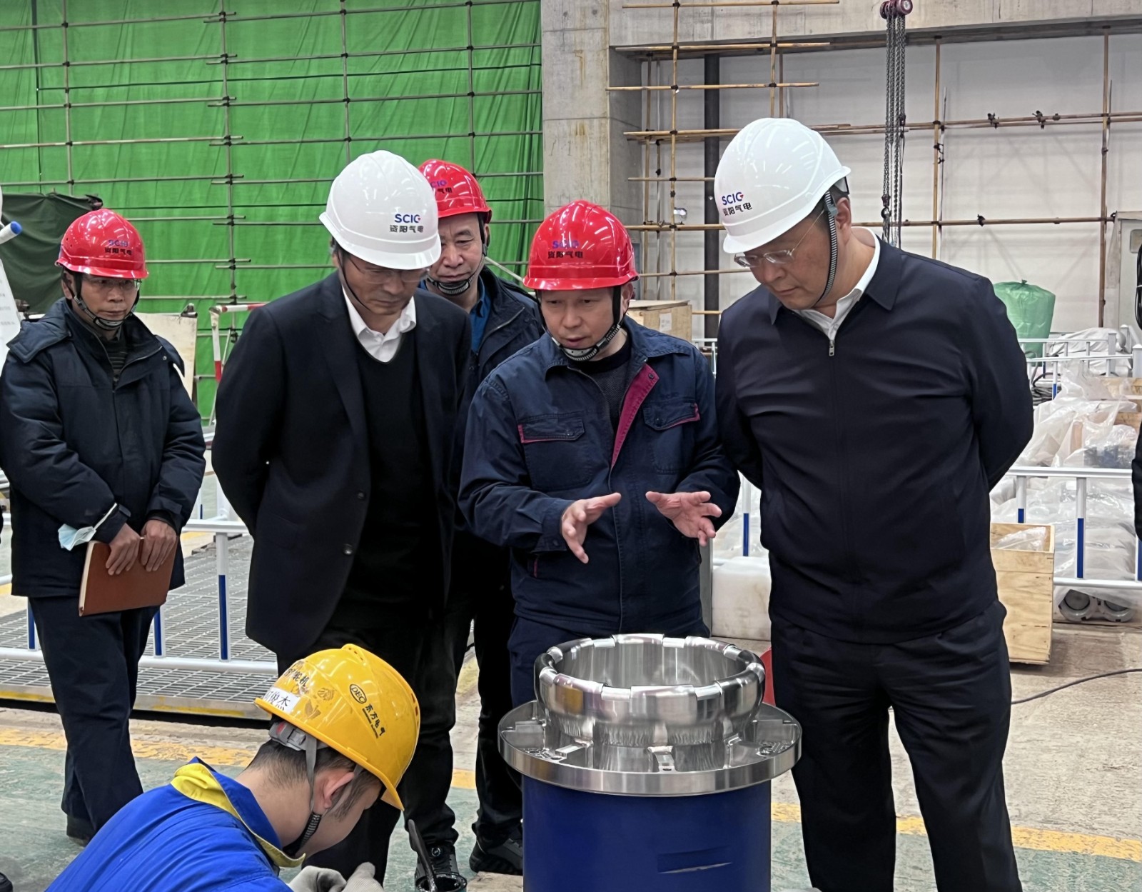 李文志一行深入主厂房15米平台、升压站、智慧管控中心、办公区、检修楼等施工点位,通过现场踏勘、听取汇报的形式详细了解资阳燃气电站项目安全生产工作情况及工程建设进度。
