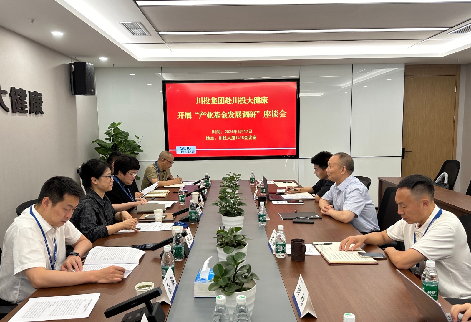 6月17日,川投集团总经理助理、资本运营部部长龚圆率资本运营部、川投资本、川投君融一行赴川投大健康产业集团调研座谈。双方就产业平台与产融平台合作模式和方向等进行了深入探讨。川投大健康产业集团党委书记、董事长、总经理鲁洪斌参加座谈。