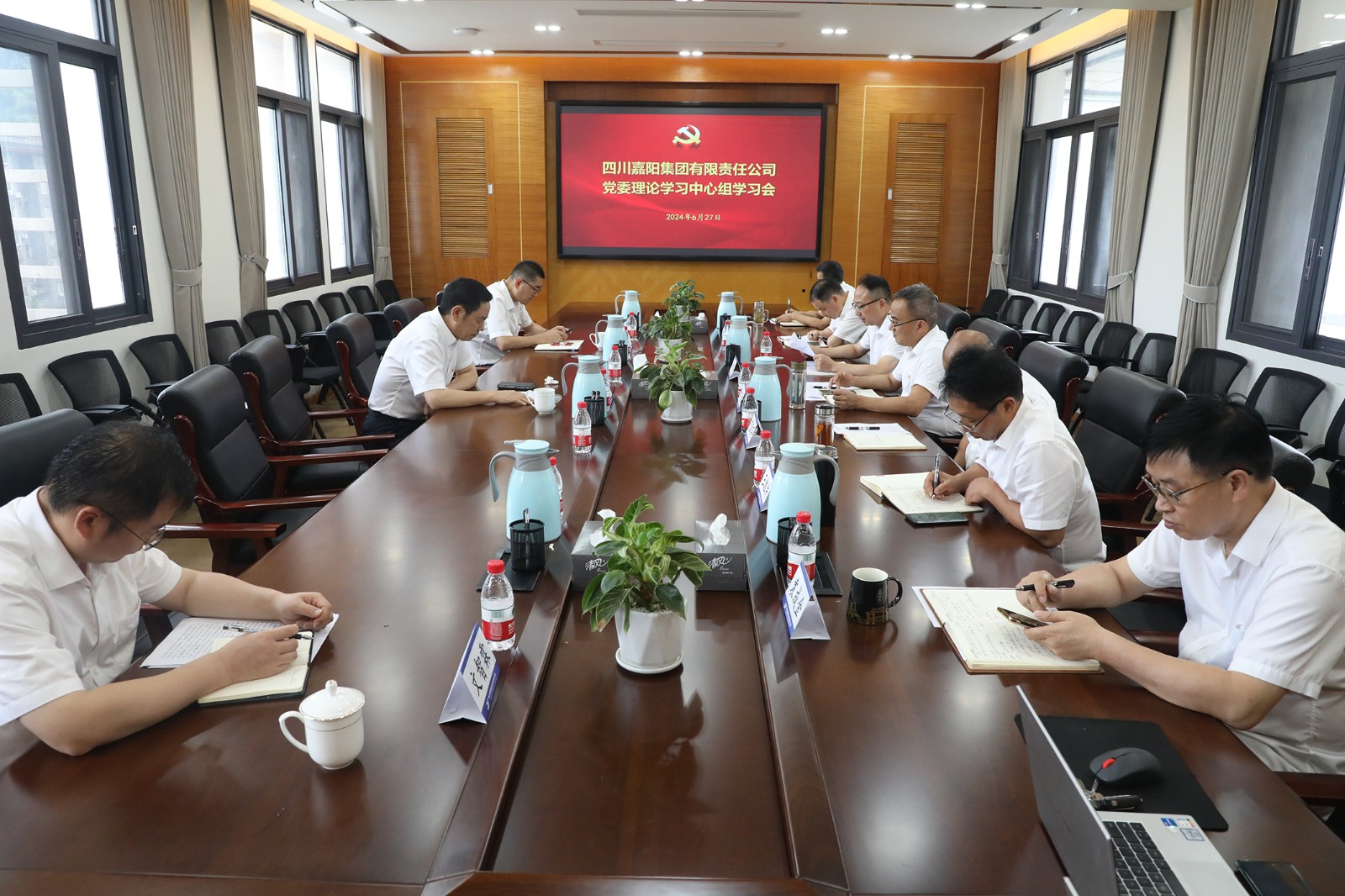 6月27日,嘉阳集团召开党委理论学习中心组学习会,重点围绕“发展新质生产力,推动企业高质量发展”主题开展专题学习研讨。川投集团党委副书记、董事邓凯参加会议,点评学研情况。党委书记、董事长杜勤主持会议。
