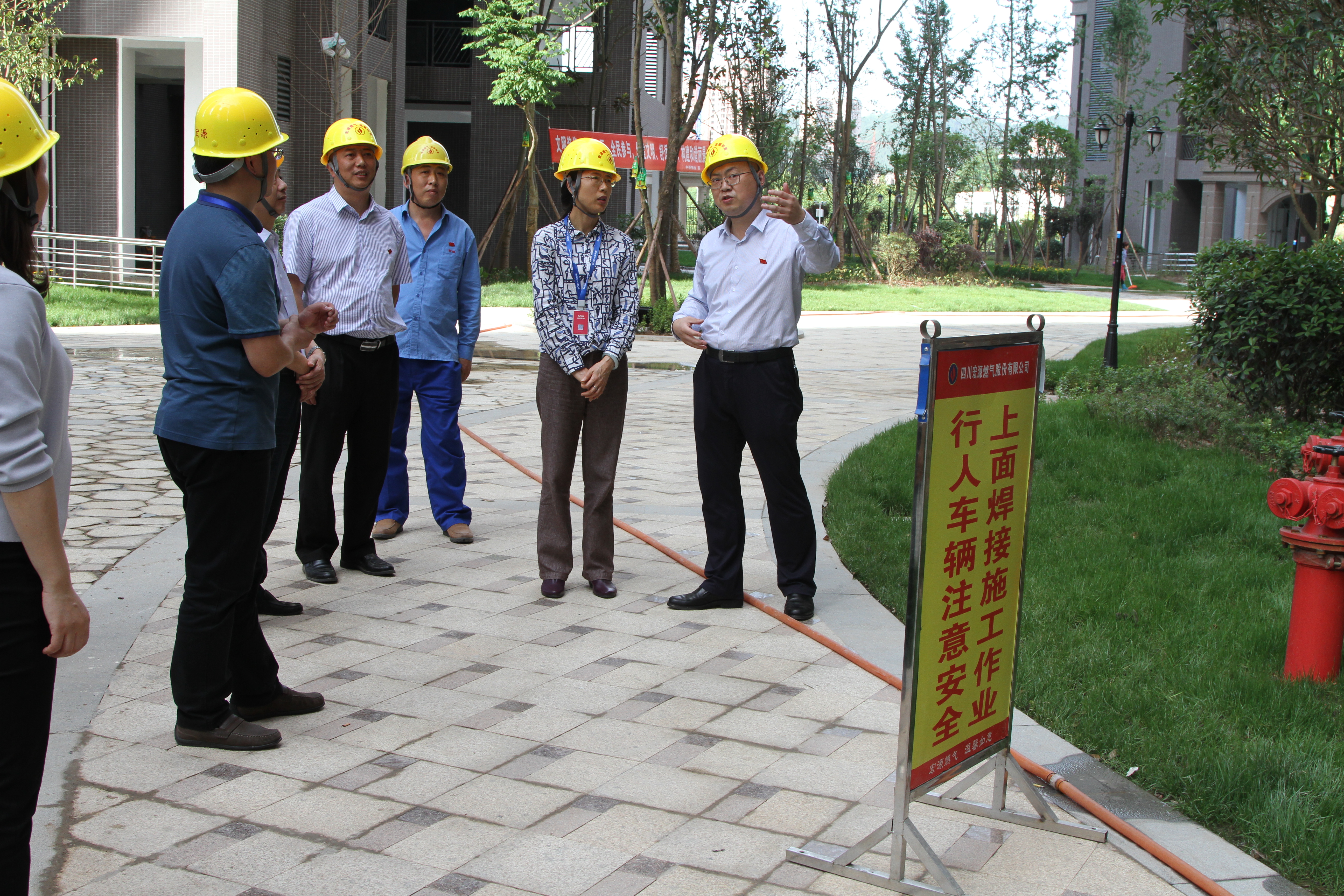 在宏源燃气公司,检查组一行直奔CNG加油加气站,对生产经营情况、压缩机运行情况、配电室、监控室进行了全面检查,随后又到燃气工程加工厂查看高层立管安装情况。石平总助仔细查看了燃气管道焊接质量、防腐工艺,要求不断提高焊接水平,确保燃气工程安装质量。在天然气储配站,检查组一行查看了燃气输配流程、工艺,详细查阅了宏源公司各项安全工作台账资料。在检查凯立现代城高空吊装时,石平总助查看了施工人员佩戴劳动保护用品、高空焊接、高空吊装、现场警示围栏设置等情况,对现场辛勤工作的员工表示慰问。