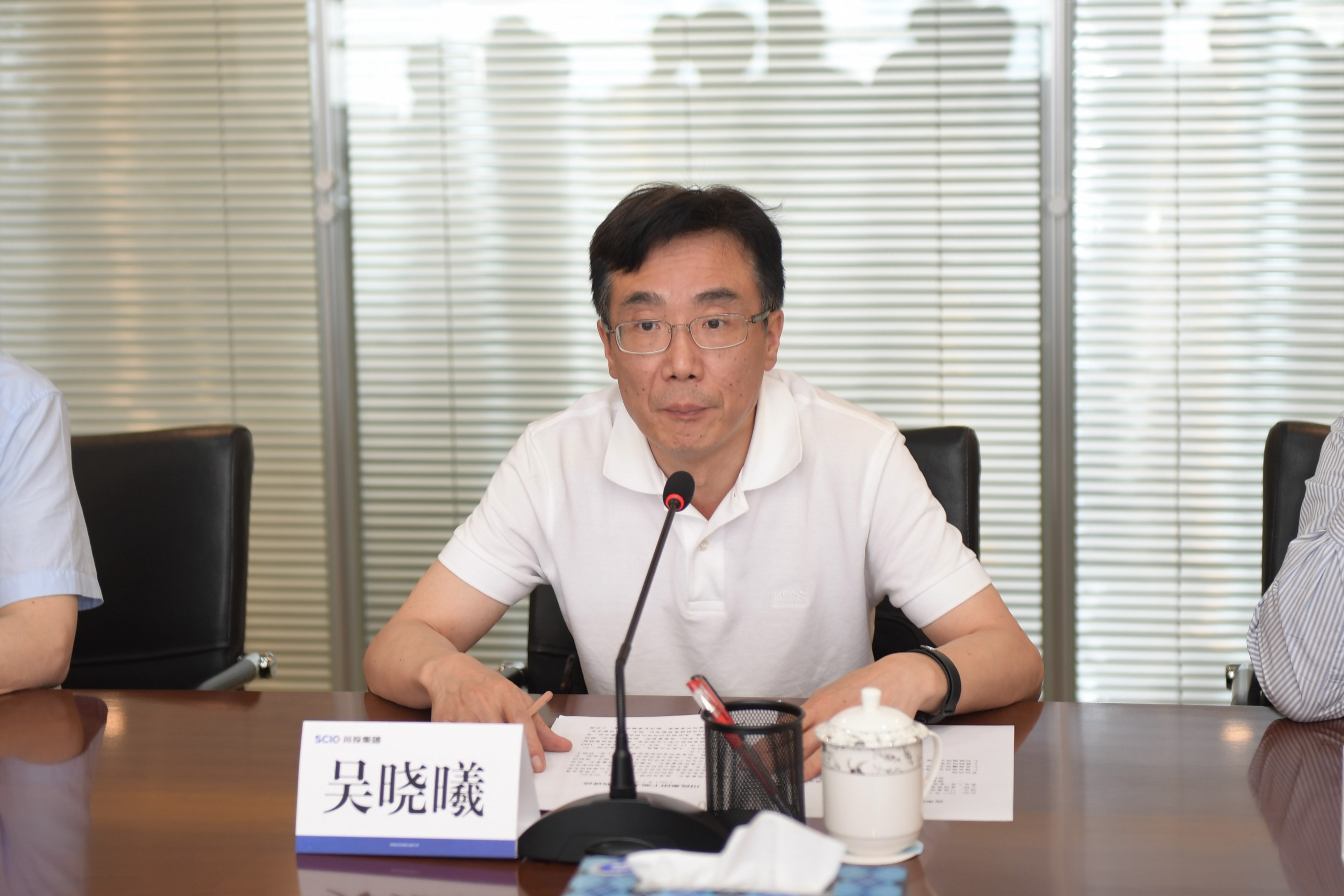 5月18日上午,川投集团干部大会在锦江国际大厦2311会议室召开,省国资委党委专职副书记吴晓曦、省国资委副巡视员、领导人员管理处处长杨会思出席会议,集团公司班子成员、部门负责人及在蓉企业主要负责人共计30余人参加会议。