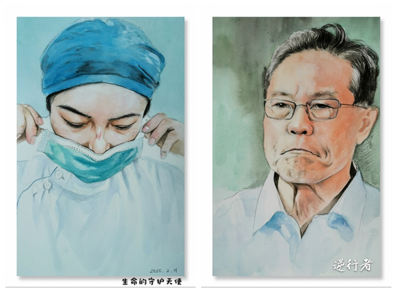 练文娟是川投能源所属交大光芒职工文宇德的爱人。疫情发生以来,文宇德就被派往外地值守。练文娟在家里每天只能通过微信视频和自己的丈夫联络,担心和思念之情,化作了手中的画笔,她以钟南山院士为原型,别具匠心地创作了系列水彩画,向一线医务工作者致敬。