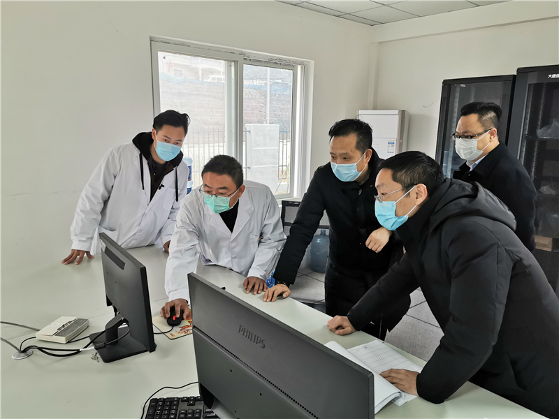邓锐首先到新苗水厂一级泵站实地查看了原水水质、水位等情况,随后分别到新苗水厂、太吉水厂,就厂区防疫情况和生产工艺流程进行了检查,并仔细翻阅了生产工艺、水质检测和疫情防控有关记录台账,详细询问了防疫物资储备情况。大英水司总经理刘松果详细汇报了安全生产和疫情防控工作。
