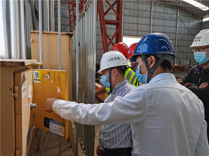 检查组一行首先了解了空港项目的复工复产以及施工现场安全管控和环保措施落实情况,随后实地查看了正在施工的简机路以及东一线南延线道路及综合管廊工程。对其中的道路临时导改、起重作业、深基坑作业、钢筋加工作业、特种设备和施工电源管理等安全管控重要环节进行了重点检查,此外还对空港项目现场的安全管理资料进行了检查。