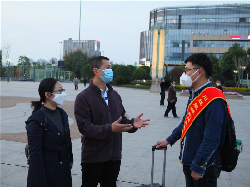 4月25日,川投能源 “最美逆行者”、交大光芒工程突击队队员何啊潭同志圆满完成在武汉铁路局的值守任务,带着胜利和平安凯旋归来。川投能源党委副书记、工会主席杨超龙与党群工作部主任杨鑫以及交大光芒党总支委员汪志桥一道,手捧鲜花,到成都东站迎接川投能源“最美逆行者”回家。
