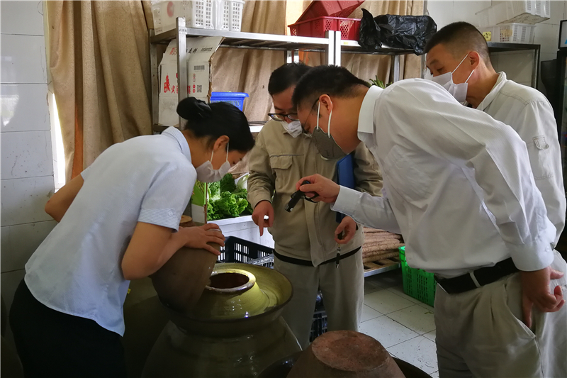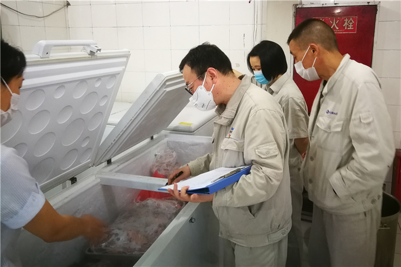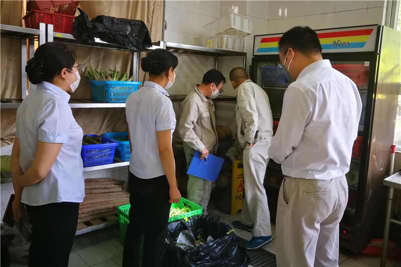 检查过程中,委员会成员按照通知及检查表内容,采取翻阅资料、查看现场、询问了解等方式,对从业人员健康证、个人卫生状况、食品原材料及调味品进货渠道、包装材料、饭菜质量、食堂卫生、蔬菜及肉类储存环境等主要内容事项进行了检查。随后对检查发现的5个问题及员工关心关注的事项与物业公司管理人员进行了沟通,并明确了整改计划。