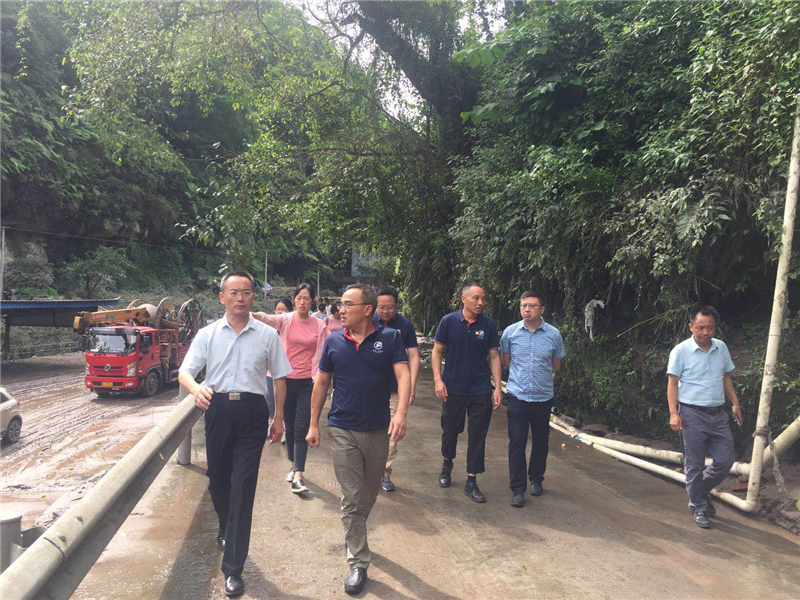 8月19日,乐山市副市长周伦斌、市文旅局局长宋秋一行到嘉阳•桫椤湖旅游景区检查灾后恢复重建工作情况。