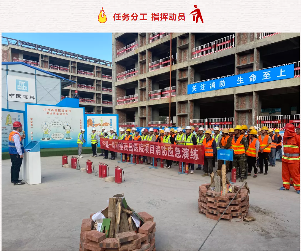 近日,围绕“关注消防 ,生命至上”的消防安全主题,公司组织开展川投西昌医院项目消防应急演练。公司主要领导、川投项目医院项目组、各参建单位及物业、保卫相关人员共计70余人参加。