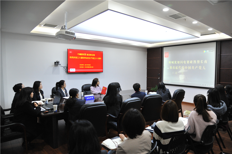会议首先开展党史学习教育,并组织观看了党史学习教育视频《英特纳雄耐尔一定要实现》和巾帼英雄《杨开慧》《赵一曼》视频片。