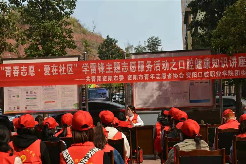 3月5日,资阳口腔职业学院联合共青团资阳市委、资阳市青年志愿者协会,深入资阳双峰社区,开展口腔健康知识讲座,以志愿服务传承雷锋精神,以实际行动彰显时代价值。