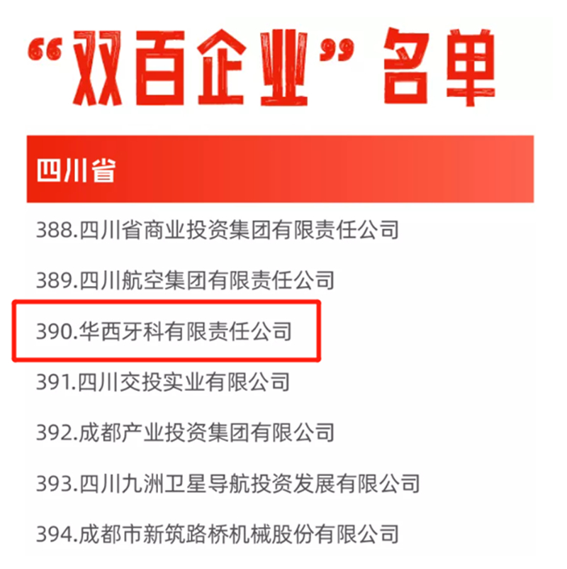 根据国企改革三年行动和“双百企业”推进计划和前期试点工作评估,国务院国资委官网日前公布了最新的“双百企业”名单,川投集团控股的华西牙科有限责任公司持续入列国企改革“双百行动”四川省企业试点单位。