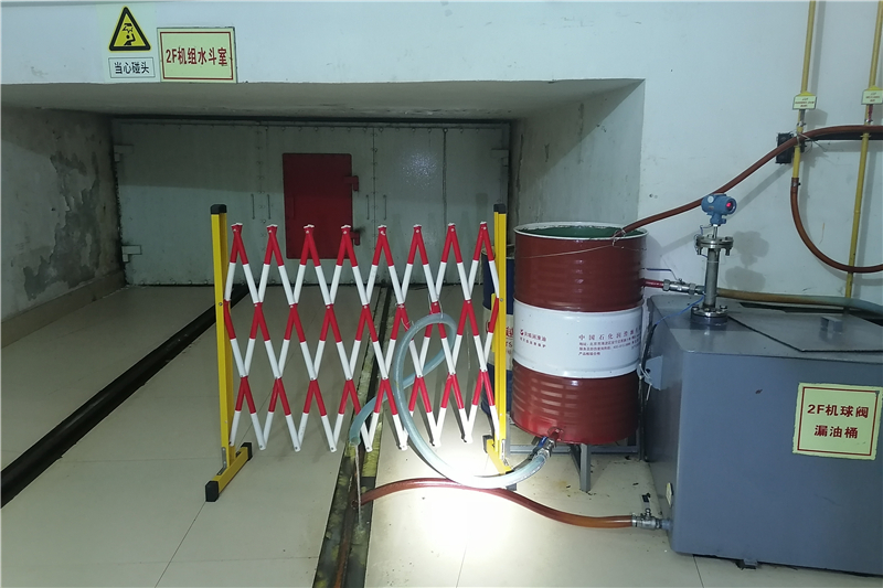 今年汛期以来,由于机组AGC投省调侧,负荷调整频繁,加之密封老化,田湾河公司金窝2号机组喷针折向器渗漏量较正常有所加大,呈线性漏水。因汛期持续高负荷运行,暂不具备停机处理条件,检修人员在球阀层漏油箱旁临时串增了一个柴油桶,以增加渗漏油、水的临时储存容量,同时发电部每日定时排水,按期抽油,确保漏油箱油位在正常范围。