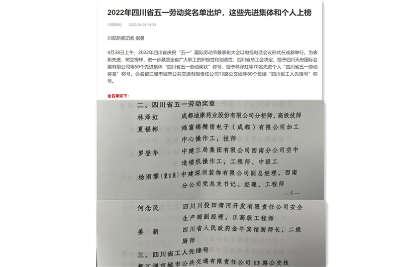 在2022年“五一”国际劳动节即将来临之际,田湾河公司员工何念民喜获四川省“五一”劳动奖章。这也是自2009年公司全面投产发电以来相隔12年,公司员工再次获得这一省级殊荣。