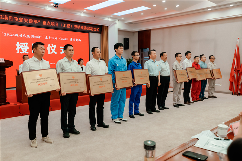 启动仪式上,市总工会授予金沙江银江水电站等项目(工程)为“2021年度攀枝花市重点项目(工程)劳动竞赛优胜单位”称号,并为金沙江银江水电站等“2022项目攻坚突破年”重点项目(工程)授旗,鼓舞大家加速建设、实现突破、取得实效。