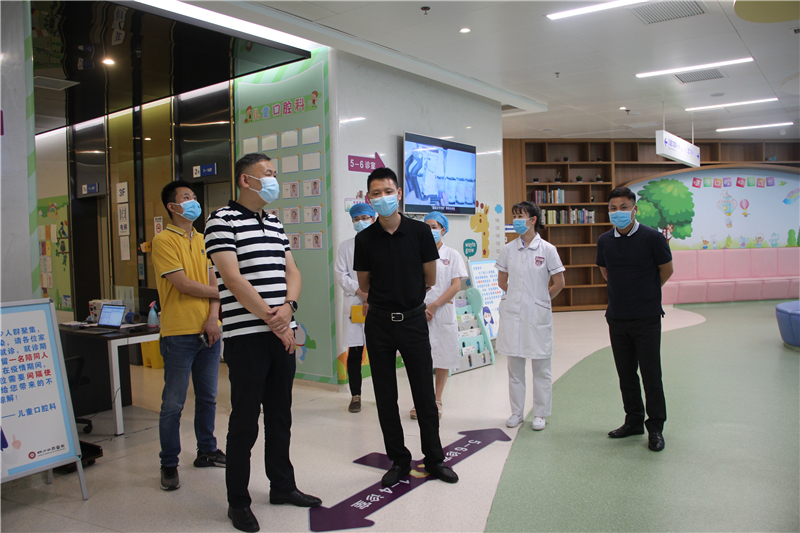 王蜀晋一行现场参观了医院儿童口腔科、正畸科、检验科等重点临床科室,了解了医院疫情防控、科室建设、人才培养、设备设施配备、诊疗流程设置情况。