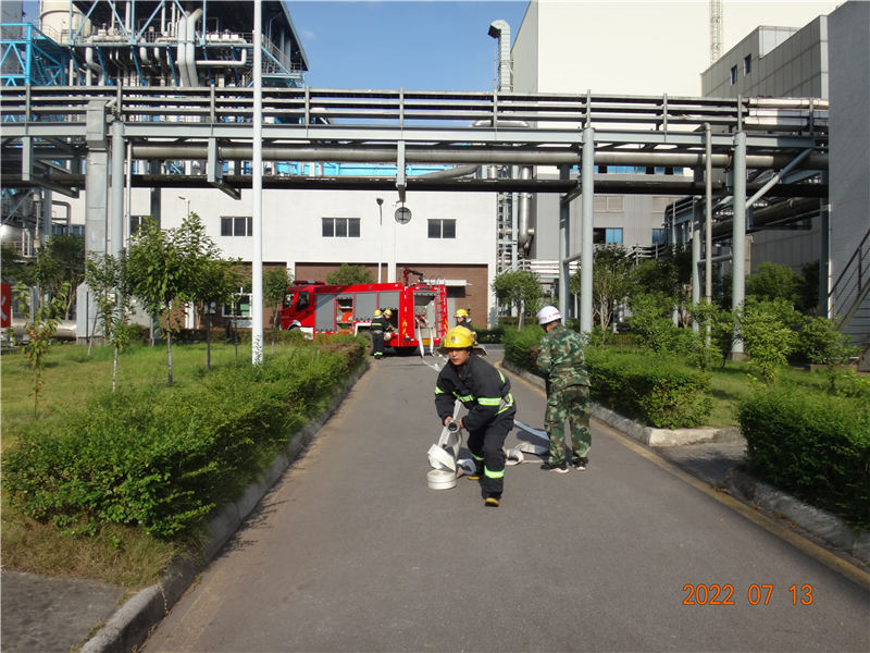 检查组一行深入天然气调压站、制氢站、消防控制室等重点防火区域,对消防设备设施的运行状况、年度检验、维护保养等情况进行检查。为检验公司应急处置能力,检查组要求立即启动天然气调压站泄漏着火应急预案,公司值班人员及消防保卫队伍接到火警通知后,迅速到达指定地点开展灭火救援工作,整个应急处置过程反应快速,现场处置井然有序,达到了预期效果。