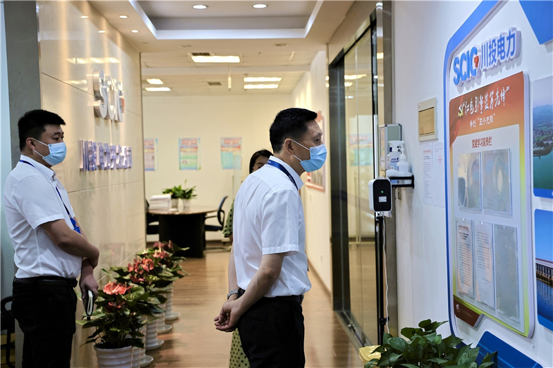 冉兰平一行首先对川投电力的办公区域、公共区域等关键点位进行了检查,并详细查看了防疫物资储备情况、疫情防控工作台账、人员健康登记台账,询问了个别“黄码”人员和“轨迹重叠”人员的核酸检测情况和居家办公情况等。随后,冉兰平一行又采取“扫楼”方式,对川投大厦6楼、9楼各办公室的疫情防控工作落实情况进行逐个督查检查。