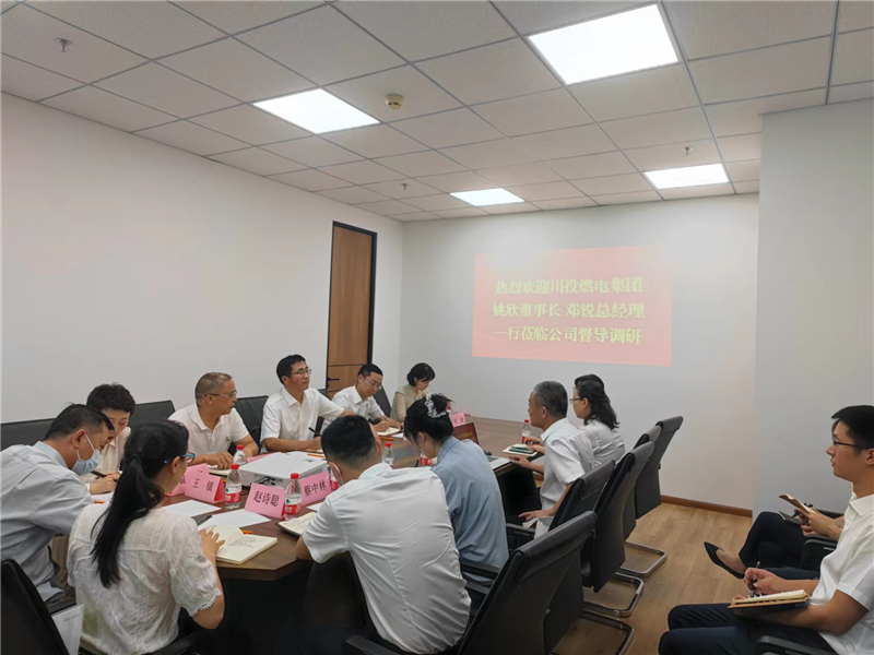 7月26日下午,由川投燃电集团党委书记、董事长姚欣带队,党委副书记、总经理邓锐,副总经理饶明,财务总监祝瑗,综合管理部、资金财务部、经营管理部负责人组成的调研组一行赴所属川投供应链公司开展调研。