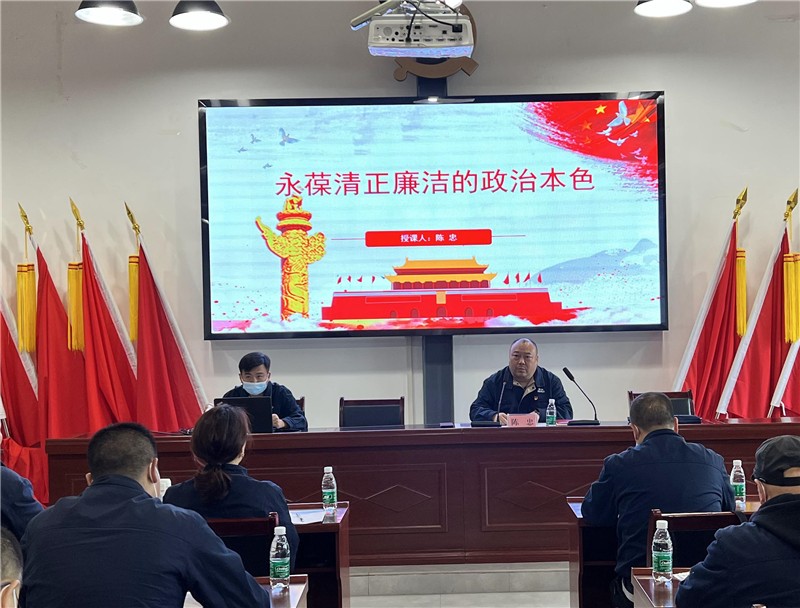 随后陈忠从永葆清正廉洁的政治本色,要把增强党性修养作为终身课题;永葆清正廉洁的政治本色,要严以律己、心存敬畏;永葆清正廉洁的政治本色,要传承优良作风,涵养浩然正气;永葆清正廉洁的政治本色,要坚持秉公用权,站稳人民立场四个方面阐述了深化党风廉政建设、营造风清气正政治氛围的重要意义和主要举措;强调大家必须牢记,全面从严治党永远在路上,党的自我革命永远在路上,决不能有松劲歇脚、疲劳厌战的情绪,必须持之以恒推进全面从严治党,深入推进新时代党的建设新的伟大工程,以党的自我革命引领社会革命。党课结束后,大家共同观看了由中央宣传部摄制的大型电视专题片《领航》之“自我革命”,进一步巩固了以严的基调强化正风肃纪、坚决打赢反腐败斗争的信心和决心。