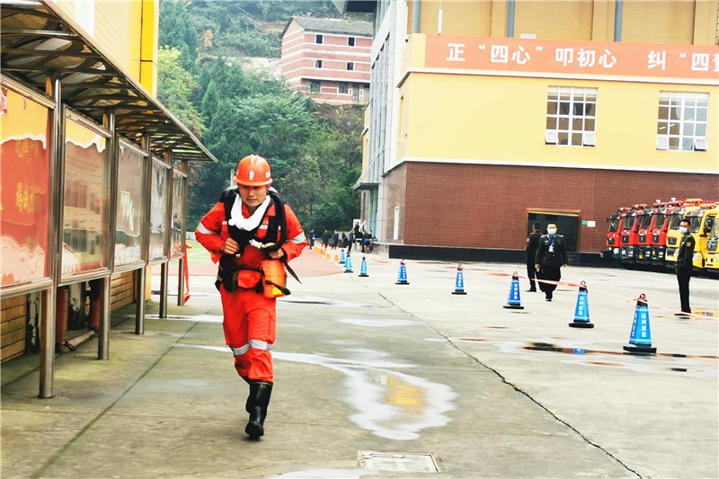嘉阳集团矿山救护队前期围绕理论知识和实际操作考核开展了理论、体能强化训练,经过激烈角逐和层层选拔,贺文冰、阮旭波两名指战员代表公司参赛。此次技能大赛主要突出参赛队伍团队协作、服从意识和参与灾害救援的专业处置能力,既有个人项目,又有团体项目,所有科目贴近实战,补短板强弱项,突出实用。在全省16支队伍64名矿山专业救援人员中,贺文冰荣获武装越野项目三等奖,团体获得道德风尚奖。