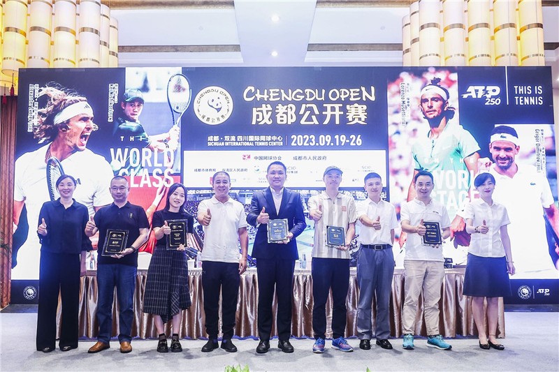 成都市体育局机关党委书记杨慎微、成都市双流区文化体育和旅游局副局长何健、成都市体育投资集团有限责任公司副总经理李娜、四川川投国际网球中心开发有限责任公司党委书记、执行董事白蕾作为赛事组委会代表,尤尼克斯、一汽大众、成都环球中心天堂洲际大饭店、英派斯、苏老泉作为赛事赞助商代表,以及近30家媒体代表一起,现场共同见证2023年成都公开赛的强势回归。