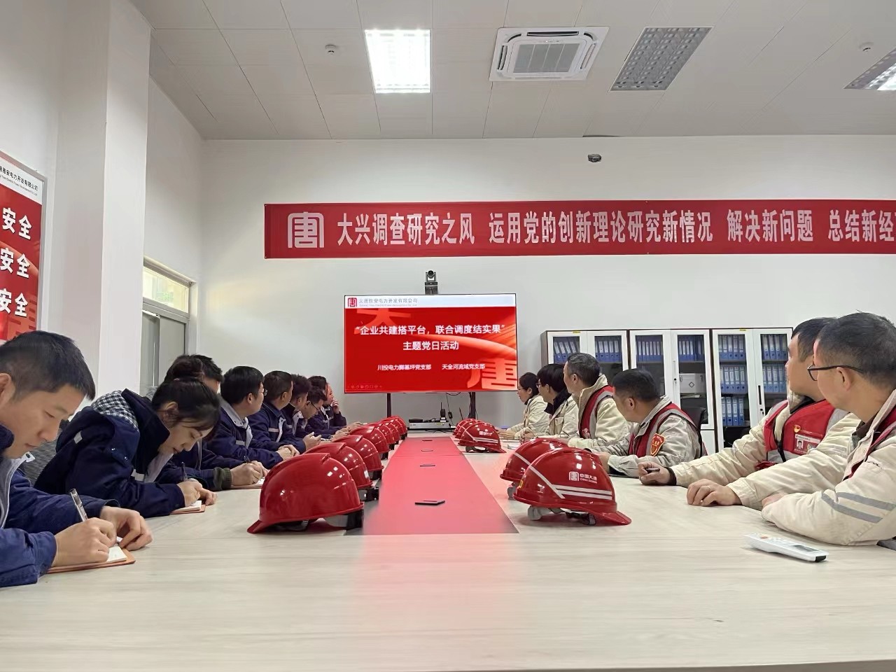 在川投能源、川投电力两级党委的积极谋划倡导下,2021年起,脚基坪电厂党支部作为发起人,联合周边村镇及上下游企业共同打造成立“党建引领企地共建示范基地”,并发挥主导牵头作用,邀请央企大唐锅浪跷、干溪坡电厂,天全县喇叭河镇、小河镇党委政府,下游民营电力、冶金等企业和周边村民“组团”,联动开展防洪度汛、防灾减灾、巡检排患、脱贫攻坚、乡村振兴、电站运营安全提升对口帮扶等工作,党支部战斗堡垒作用和企地共建互促共赢成效日益彰显。