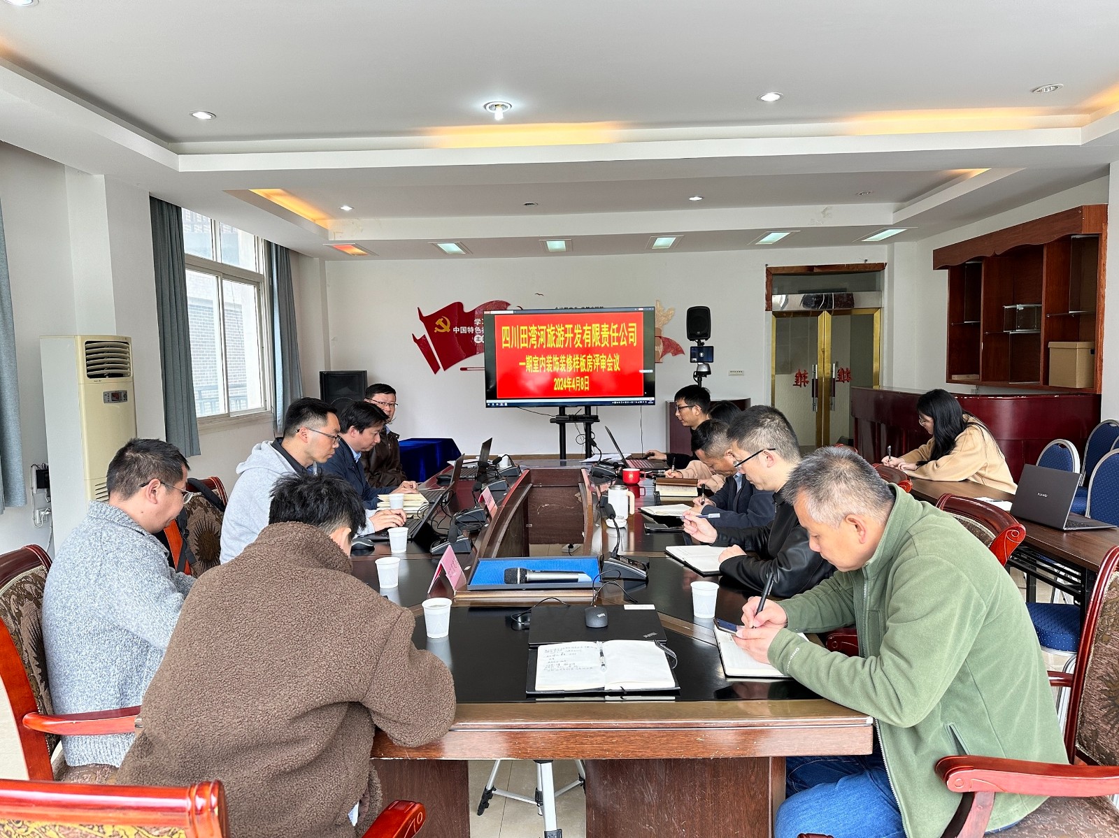 4月8日,田湾河旅游公司组织开展草科温泉小镇一期项目室内精装样板间评审。田湾河公司党委书记、董事长李红,党委副书记、总经理杨超龙,党委委员、财务总监毛建及田湾河旅游公司相关负责同志参加评审。