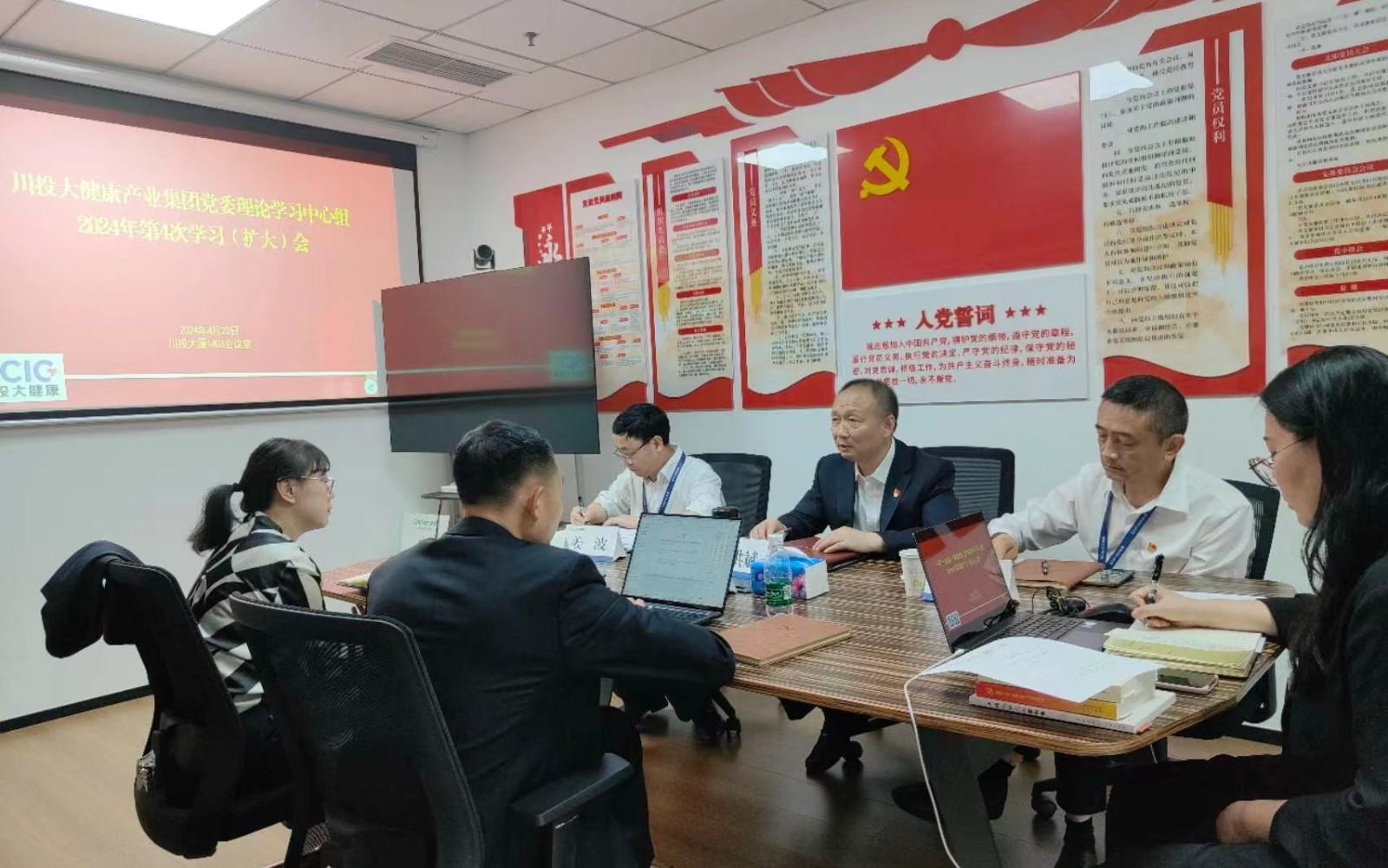 川投大健康产业集团党委理论学习中心组成员、本部中层管理人员参加会议。