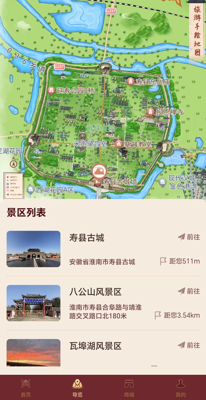 为满足游客个性化需求,2023年底,智胜慧旅开始整合寿县文化旅游资源,并在“智游寿州古城”公众号打造云游寿州、票务预订、智慧停车三个版块,通过智能导游导览、虚拟全景、路线规划以及智慧系统服务,为游客提供“游前、游中、游后”全方位服务,真正实现“一部手机游寿州古城”。