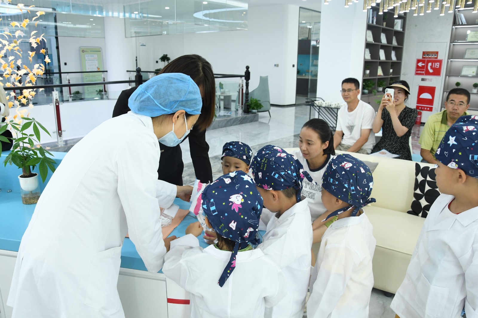 5月18日至19日,兰州华西牙科医院分批次邀请60余位小朋友到院参加“精灵特遣队活动”。活动中,医生以生动易懂的形式向小朋友宣教爱牙护牙相关知识,并为每一位小朋友进行口腔检查。随后,每一位小朋友化身为小小牙医,为自己的父母进行口腔“检查”。
