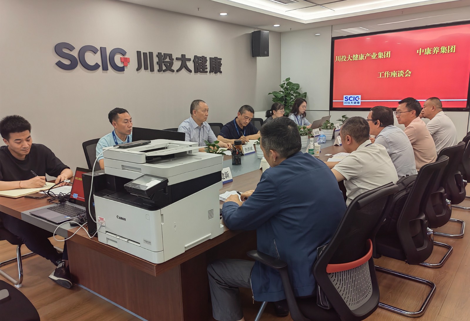 中康养集团一行对川投大健康产业集团的热情接待表示感谢,张晋介绍了中康养集团的发展历程、现状及规划目标,提出双方可交换资源,找到产业互补的通道,并表示将协助川投大健康产业集团盘活资产和招商合作。