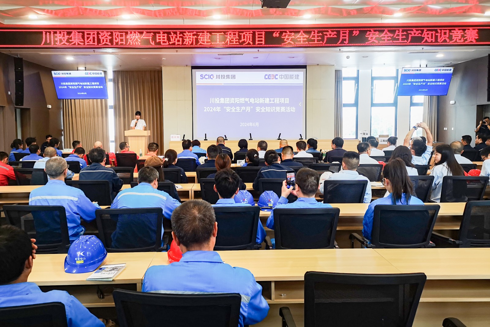 资阳气电副总经理、工会主席李明,副总经理、首席安全官严天元及川投集团资阳燃气电站新建工程项目EPC总承包项目部、广东天安监理项目部领导班子,资阳气电各部门、各参建单位共100余人参加竞赛活动。