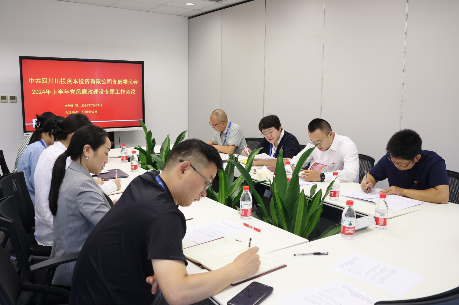 7月24日,川投资本召开2024年党风廉政建设专题工作会议。公司党支部书记、董事长、总经理王静轶出席会议,全体党员参加会议,会议由支部纪检委员、副总经理付强主持。