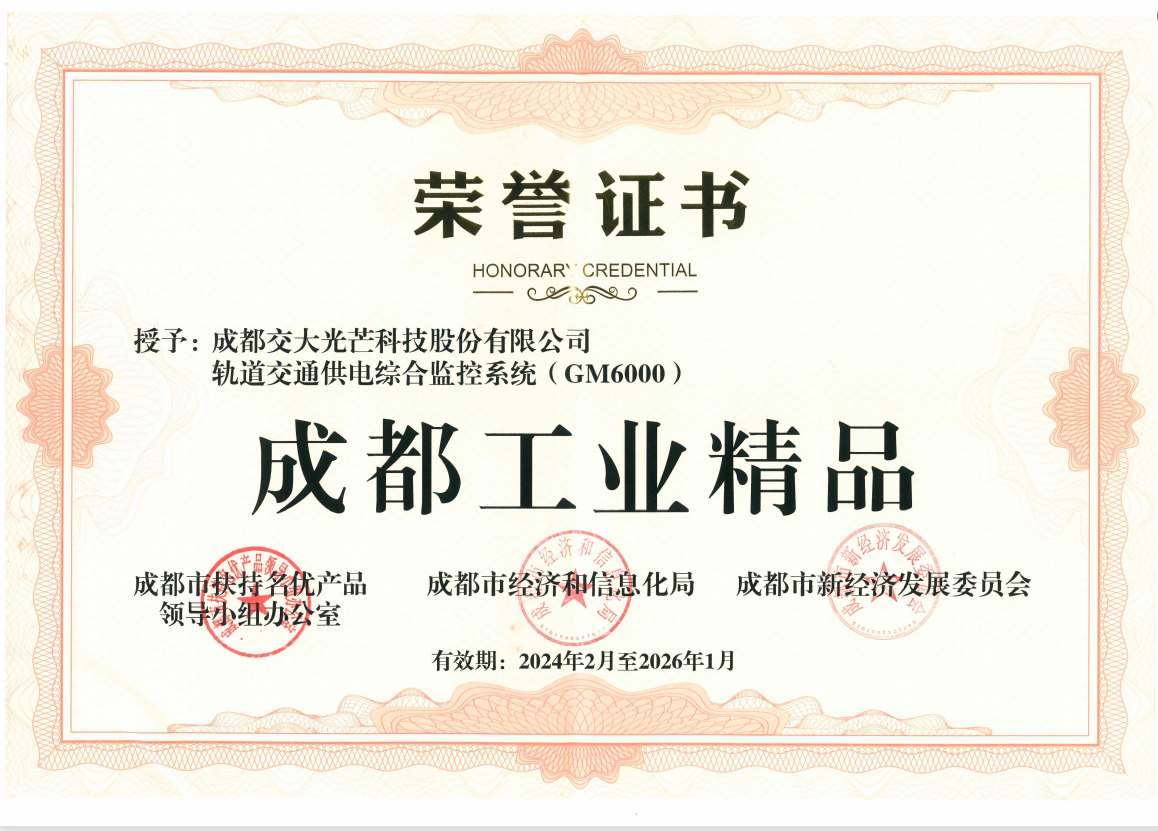 2024年,交大光芒继续研发和推出市场认可、国家需要的新产品。在知识产权方面,公司上半年取得授权发明专利5项,累计47项,为公司的持续创新提供了坚实支撑。在产品方面,交大光芒轨道交通供电综合监控系统(GM6000)获评首批成都工业精品,该系统致力于实现轨道供电系统的智能化与自动化管理,进一步保障铁路运输的“安全、高效、绿色、经济、智能”运行。交大光芒推出的“新一代轨道交通智能供电综合监控场景”通过在成都地铁十九号线的应用,荣获成都市标杆场景三等奖,全面提升了轨道交通安全可靠和智能化水平,标杆示范效应明显,进一步提升了城市枢纽的交通配套水平,助力成都打造“智慧化新名片”。
