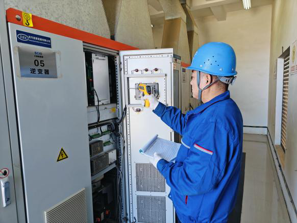 电站运维人员对逆变器、变压器等关键设备进行巡检和保养,仔细查看光伏组件的连接情况,清理设备及组件表面的灰尘,保证光伏组件能够高效地吸收太阳能。除了定期巡检外,还紧盯重点时段、重载设备,确保电站设备安全稳定运行。