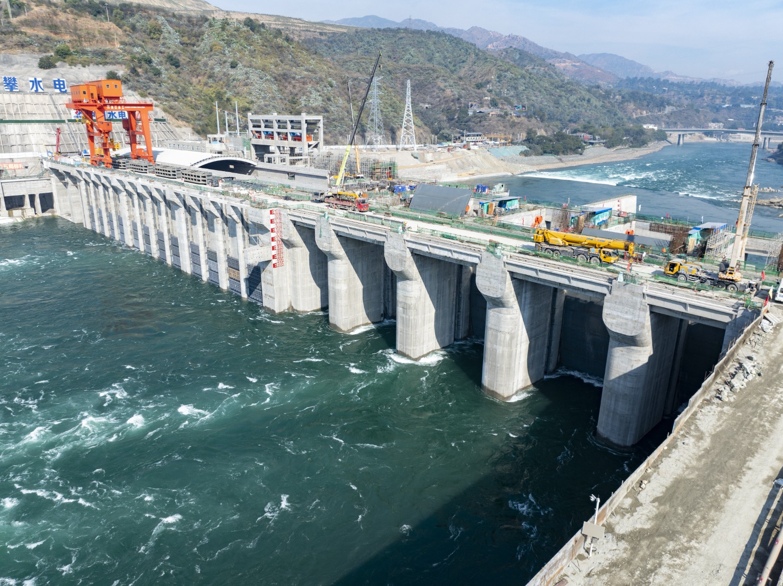 12月20日中午,随着主河床溢流坝段5孔工作弧门徐徐落下,银江水电站正式启动下闸蓄水,奔腾的金沙江水渐渐平静,库区水位缓缓上升,高峡出平湖的壮阔画卷将逐步展现在攀枝花市民眼前。