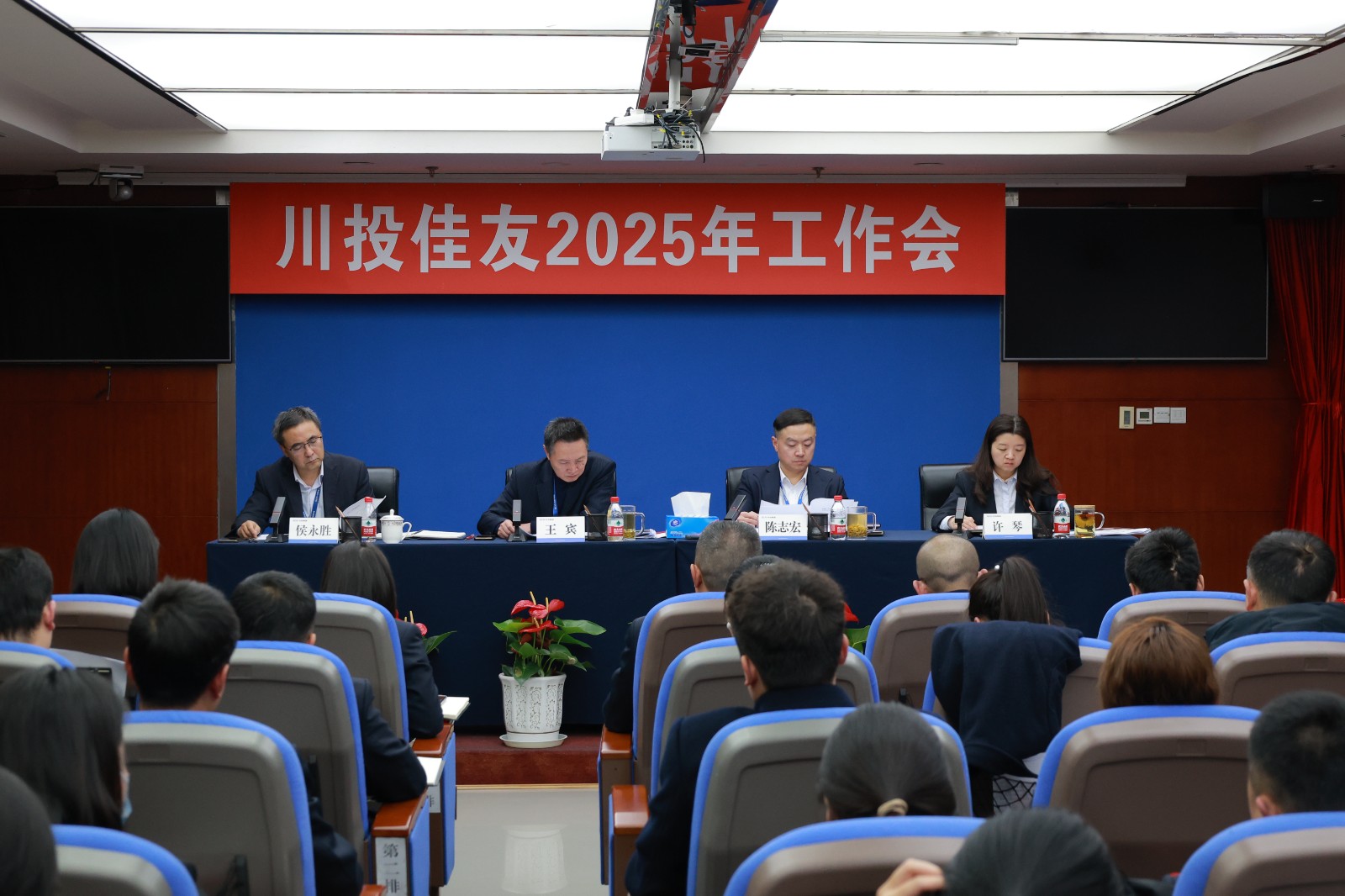2025年2月14日,川投佳友物业召开2025年工作会暨表彰大会。参加会议的有公司党支部书记、董事长王宾,党支部副书记、总经理陈志宏,支部委员、副总经理、工会主席侯永胜,财务总监许琴,公司本部全体员工、各分公司负责人、区域项目总经理、各物业服务中心负责人、公司2025年度先进班组代表、先进团队代表、公司2025年度先进员工代表、职工代表。会议由公司支部委员、副总经理、工会主席侯永胜主持。