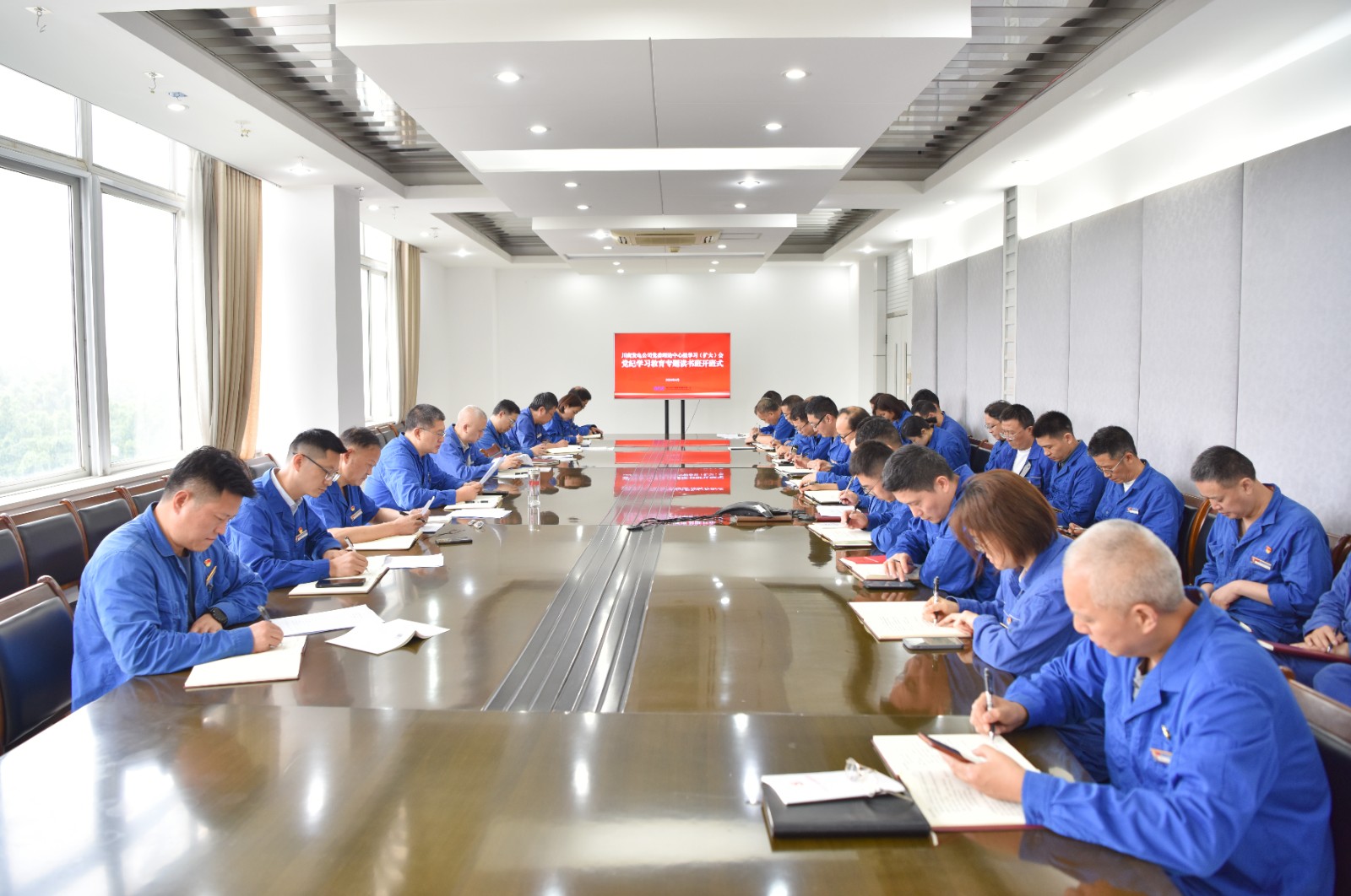 4月24日,川南发电公司党委在行政办公楼三楼会议室召开2024年第4次党委理论学习中心组扩大会暨党纪学习教育专题读书班开班式。公司党委书记、董事长刘胜金主持会议并就开展党纪学习教育及专题读书班学习进行了安排部署。公司领导班子成员、中层管理人员参加会议。
