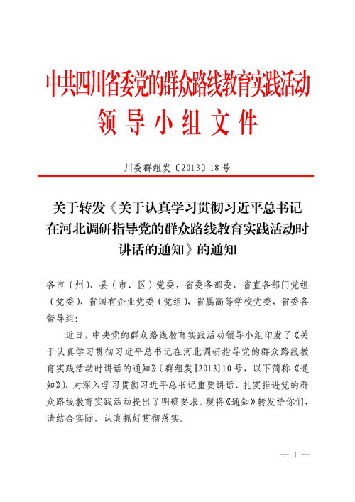 关于转发《关于认真学习贯彻习近平总书记在河北调研指导党的群众教育实践活动时讲话的通知》的通知