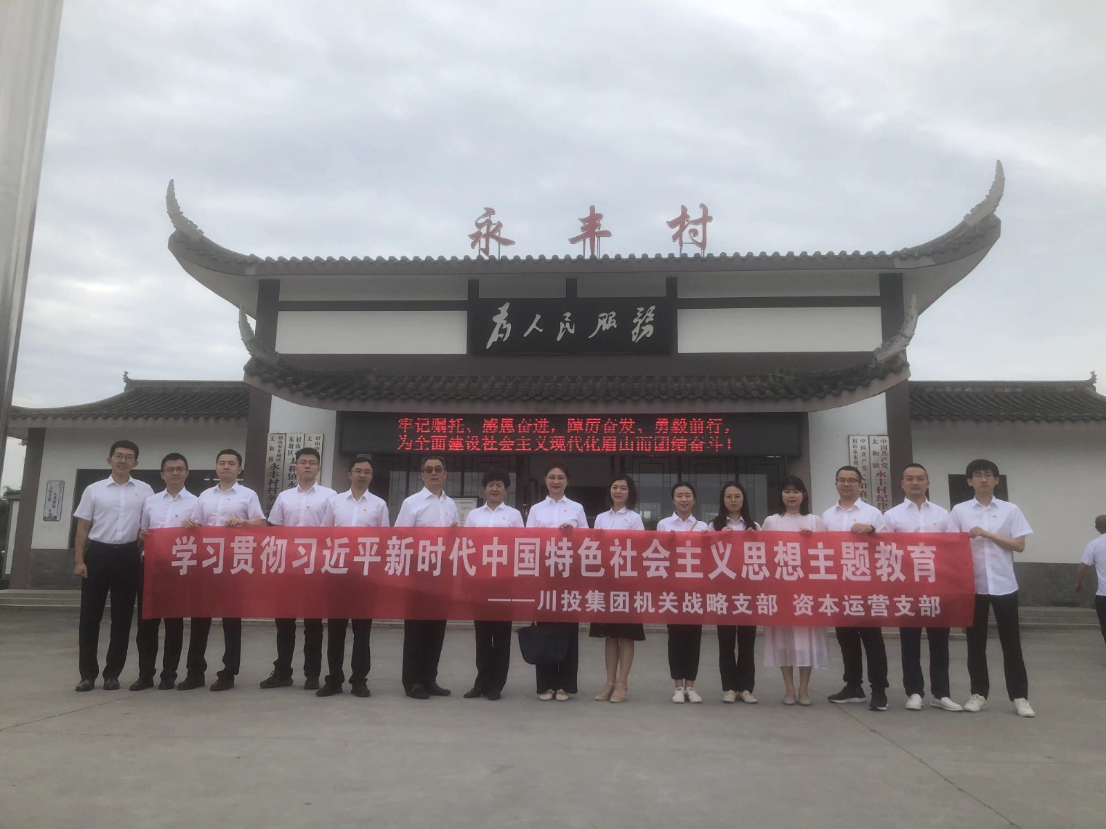 为全面深入学习贯彻党的二十大精神,深入开展学习贯彻习近平新时代中国特色社会主义思想主题教育,6月30日,集团直属机关党委战略支部联合资本运营支部,组织全体党员干部沿着习近平总书记的足迹,走进眉山永丰村和三苏祠开展主题党日研学活动,沉浸式学习领会习近平总书记关于“三农”工作、文化自信和家风家教等重要指示精神。集团公司副总经理郑世红,战略支部和资本运营支部15名党员参加活动。