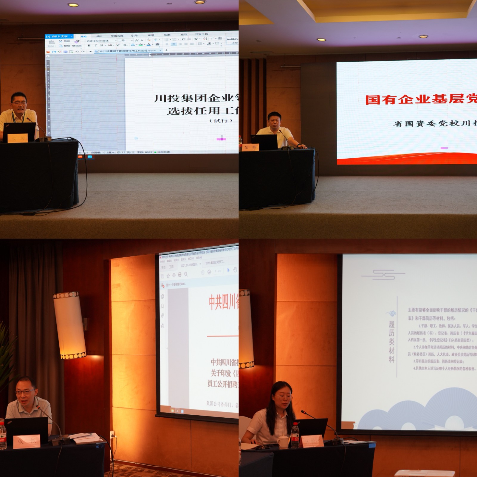 问题导向,知行合一,重在一个“实”字。党建模块聚焦基层党建重点工作任务,邀请川投集团党委组织部副部长郑雄详细梳理了落实“三会一课”制度、规避党建工作与生产经营相割裂的“两张皮”现象的必要措施,川投能源党群工作部相关人员分别就年度党建考核、党员发展进行讲解;组织人事板块,对标对表集团党委巡察反馈问题,邀请川投集团党委组织部副部长成坤解读企业干部选任工作全流程细化评价指标,川投集团人力资源部副部长侯候细化阐释招聘管理规范化开展;川投集团及资阳口院组织人事相关人员分别就人事档案管理及员工心理健康进行讲解。