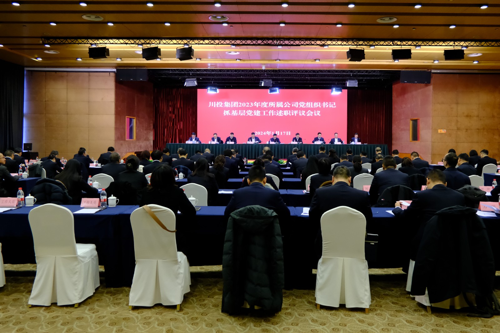 1月17日,川投集团2023年度所属公司党组织书记抓基层党建工作述职评议会议召开,川投集团党委书记、董事长吴晓曦主持会议并讲话,省国资委党委委员、副主任王先权到会指导并作点评讲话。会上,川投集团20户所属公司党组织书记现场述职,2户所属公司党组织书记书面述职,吴晓曦逐一现场点评,与会人员对述职对象进行了民主评议。