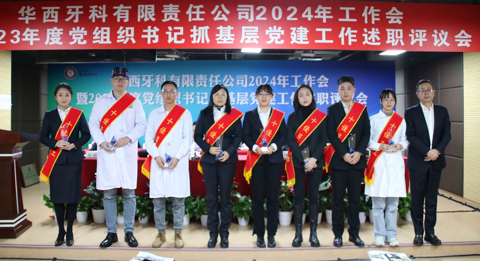 党委组织部副部长、党委党校常务副校长郑雄,华西牙科本部全体员工、各子公司党总支(党支部)书记、班子成员、中层管理人员、党员代表、职工代表以及受表彰的先进个人,各子公司中层副职以上人员通过现场+视频方式参加会议。